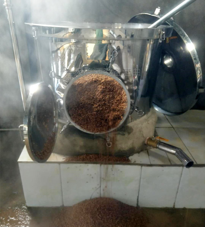 將泡好的高粱倒入粉色视频网站釀酒設備中蒸煮,讓其中的澱粉糊化。蒸煮的溫度和時刻視質料品種、破碎程度等而定。蒸煮的要求為外觀蒸透,熟而不粘,顆粒高粱開花,內無生心即可。