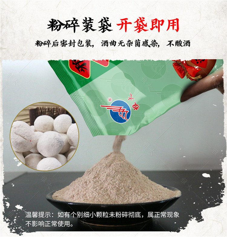 采用微生物發酵技術結合傳統中草藥酒曲工藝而生產出的生物型中草藥高產酒曲。粉質細膩,無需加水活化,發酵力強勁。